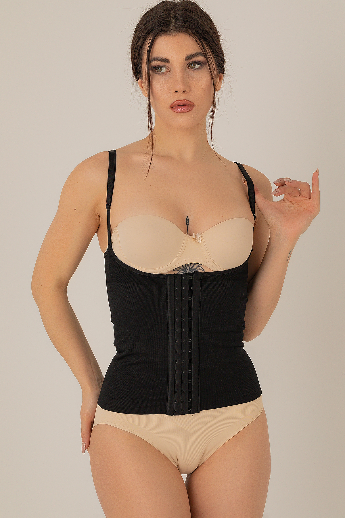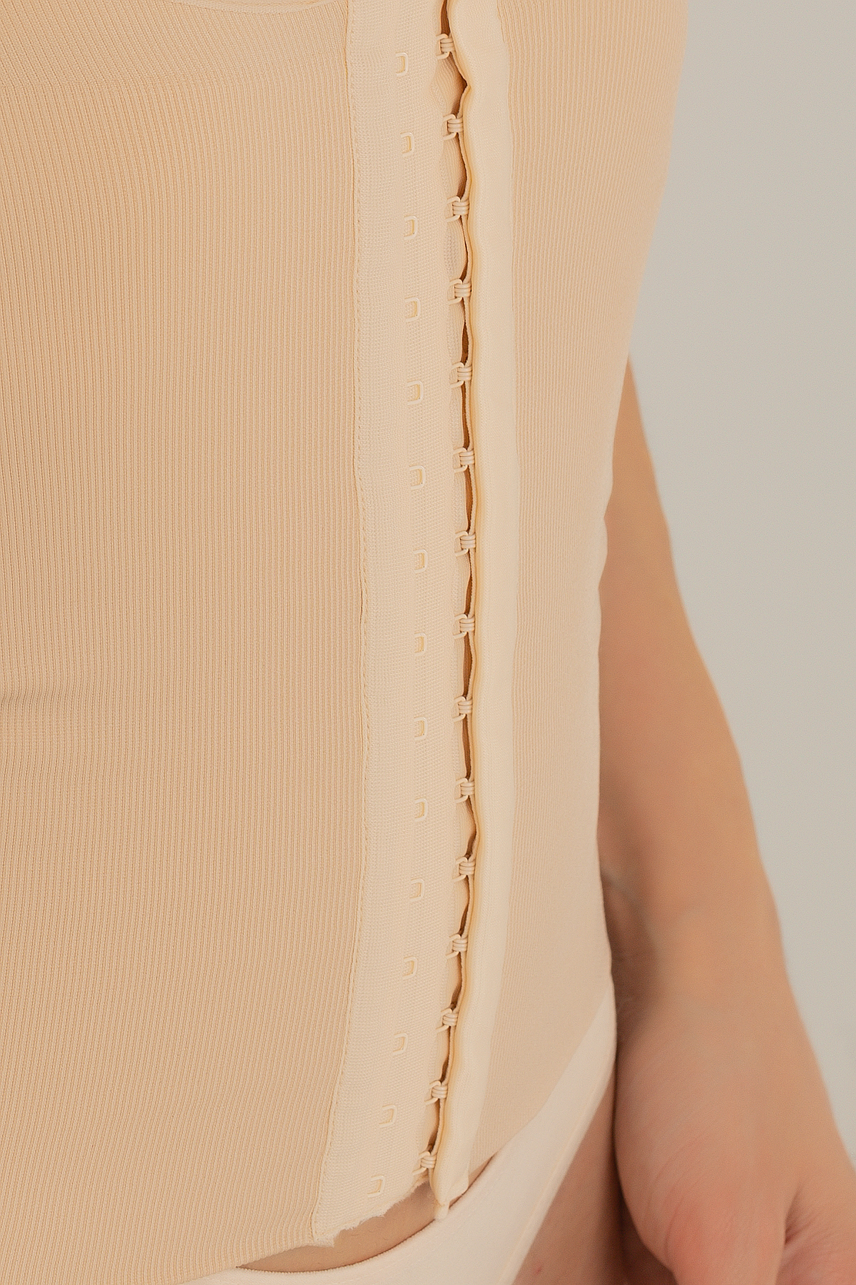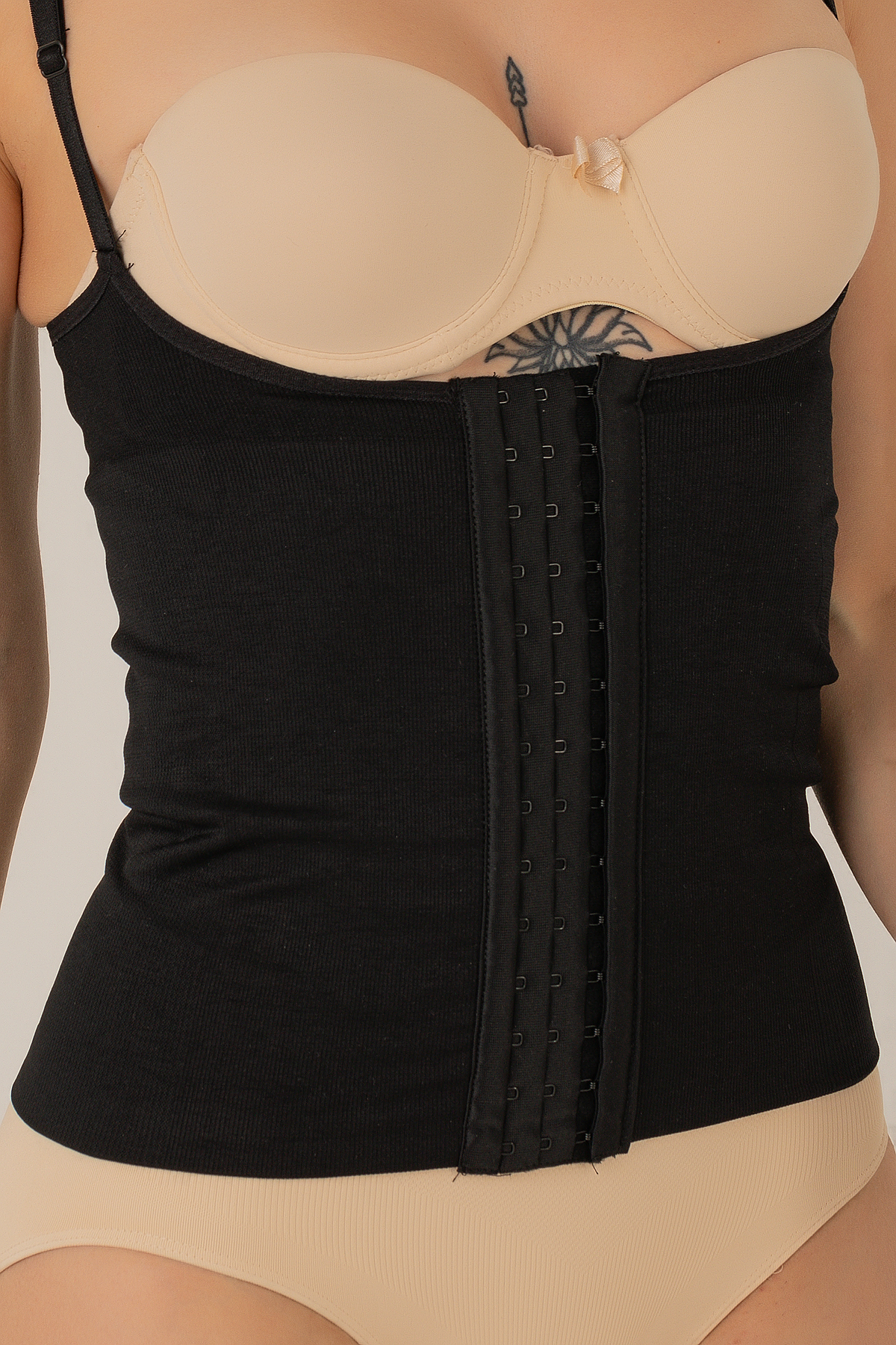 Dikişli korselere göre daha kullanışlı ve daha rahattır. Daha fit bir duruşa sahip olmanızı ve esnek özelliği sayesinde rahat hareket imkanı sağlar. Göğüs altından başlayan tasarımı sayesinde baskı yapmaz sütyen ile beraber kullanılabilir.%90 Polyamid %10 Elastan