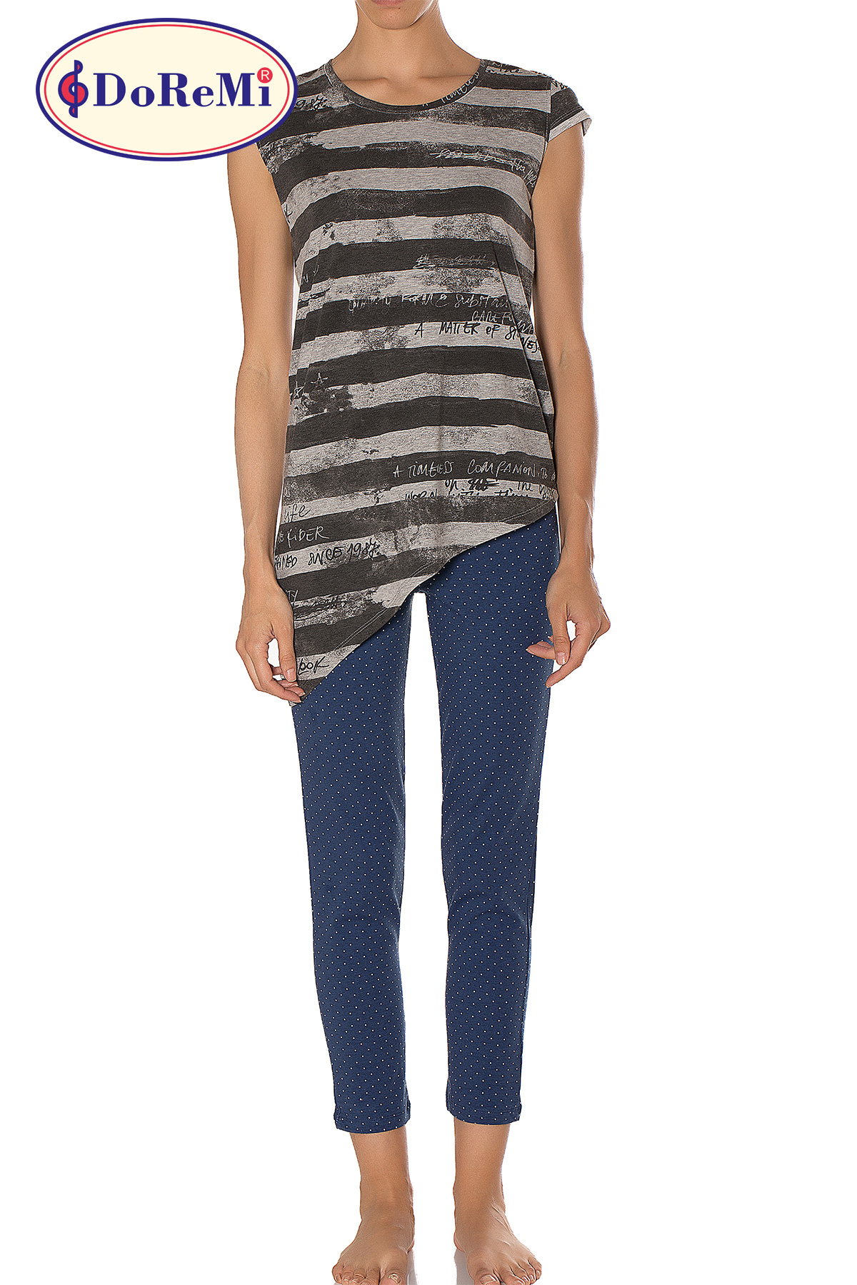 Rahat kalıbı ve yumuşak kumaş yapısıyla, ister ev giyimi ister pijama olarak kullanabileceğiniz Doremi Pijama Takımı